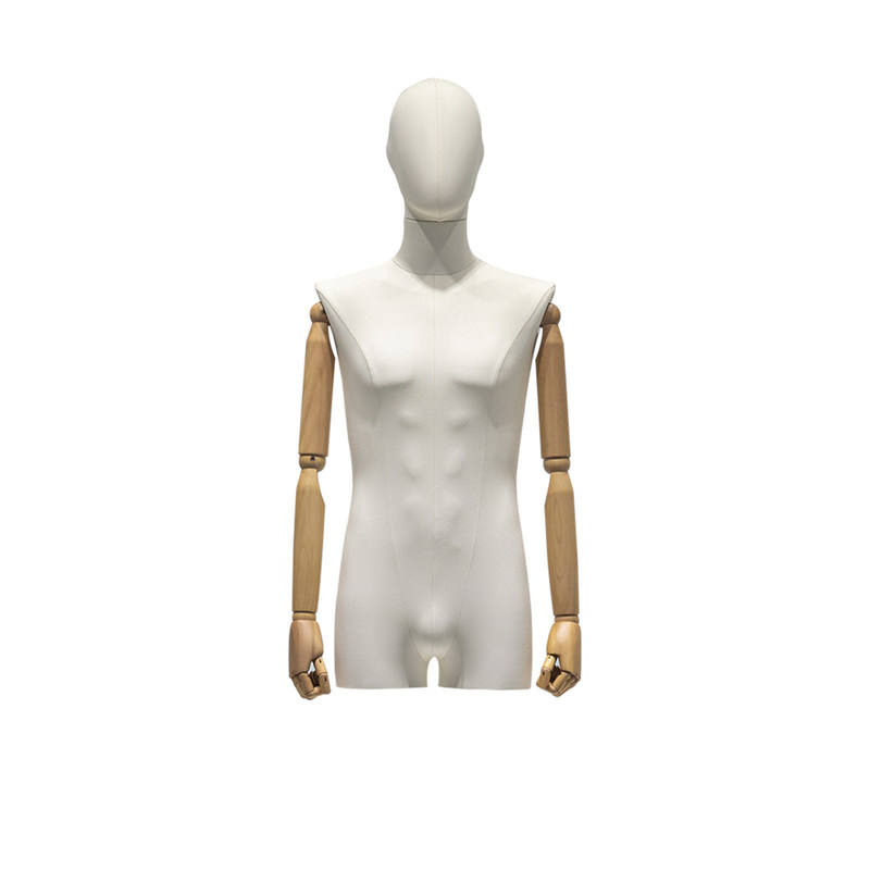 Witamy w naszym oknie!Jesteśmy dumni, że możemy zaprezentować nasze męskie manekiny, zaprojektowane specjalnie, aby pokazać naturalne krzywe ciała.Ten model został zaprojektowany tak, aby zapewnić najbardziej realistyczny i przyciągający wzrok efekt podczas wyświetlania ubrań w oknach sklepu.Nasze męskie modele na pół ciała są inspirowane naturalnymi krzywymi ciałami i starają się dokładnie odtworzyć piękno prawdziwych męskich figur.Jego konstrukcja koncentruje się na szczegółach i proporcjach, dzięki czemu okazuje się najbardziej naturalny i atrakcyjny.