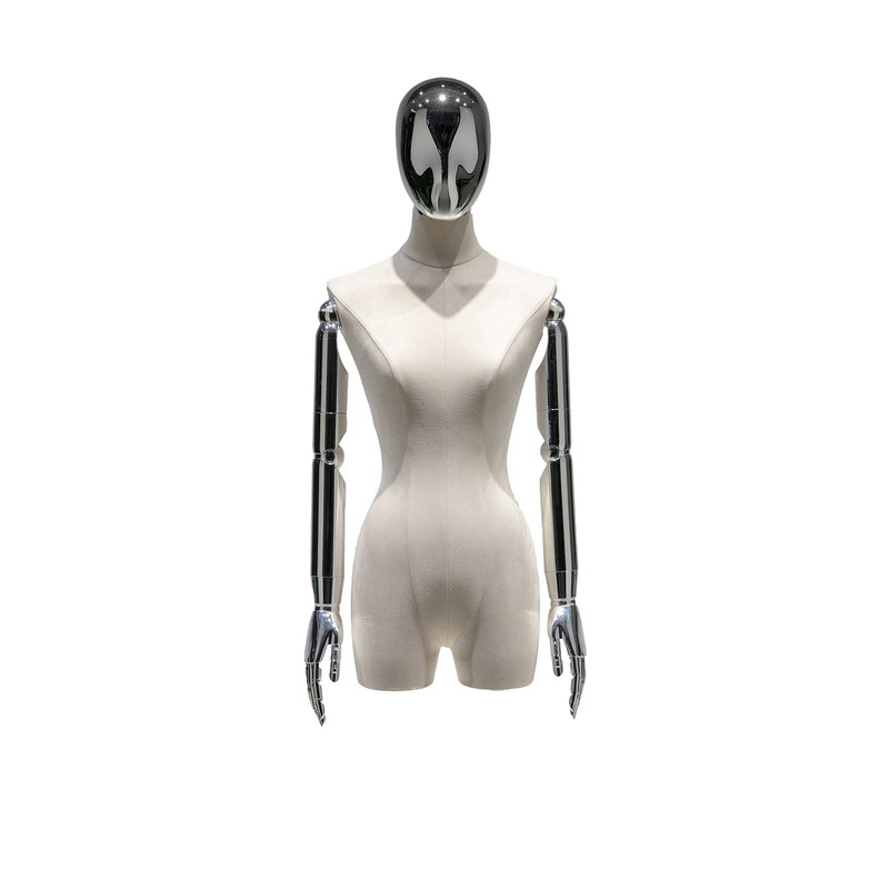 Wyjątkowość tego kobiecego manekina leży w jego elektroplacowanych ramionach i okryciu ciała.Elektrycznie pokryte srebrne ramię emanuje modną i nowoczesną atmosferą, dodając wyjątkowego uroku i wyróżniając pracę mody.Połowa pokrycia ciała zapewnia poczucie tajemnicy i unikalny styl pokazywania ubrań, przyciągając uwagę publiczności.Niezależnie od tego, czy jesteś projektantem mody, czy sprzedawcą mody, ten kobiecy manekin jest idealnym wyborem na wystawie.Jego srebrne ramiona i połowa osłony ciała nadają Twojej marce nowoczesny i wysokiej klasy wygląd, przyciągając uwagę więcej klientów.