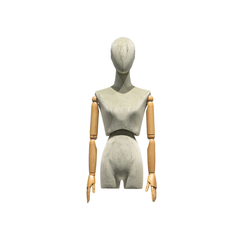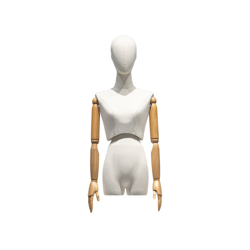 Mamy zaszczyt zaprezentować tę modelkę z skręconą talią, głową i drewnianymi ramionami.Jego wyjątkowy projekt i wykonanie zapewniają uderzający styl dla twojej mody i marki.Ten kobiecy model z pół ciała podkreśla połączenie mody i sztuki z skręconymi taliami.Ten element designu nadaje modelowi poczucie dynamiki i płynności, dodając dynamicznych i żywych efektów wyświetlanej odzieży.Jednocześnie jest wyposażony w głowę i drewniane ramiona, dzięki czemu model ma bardziej proporcjonalne i realistyczne ciało, które może lepiej odzwierciedlać efekt zużycia odzieży.