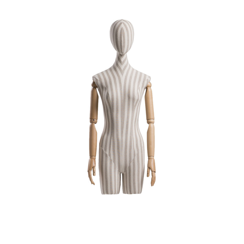 Ten model z pół ciała przyciągnął wiele uwagi ze swoją elegancją i modą.Jej szlachetna postawa i doskonała sylwetka sprawiają, że jest idealną kandydatką do prezentowania modnych ubrań.Jej brązowa, pasmowana tkanina lniana sprawia, że jest naturalna, a jednocześnie nadaje ciepła i komfortu.Projekt tego modelu podkreśla szczegóły i rzemiosło.Jej linie są gładkie, odzwierciedlając nowoczesny i minimalistyczny styl.Jej delikatny kontur twarzy daje poczucie elegancji i pewności siebie, dodając jednocześnie wyjątkowej osobowości do wyświetlania ubrań.